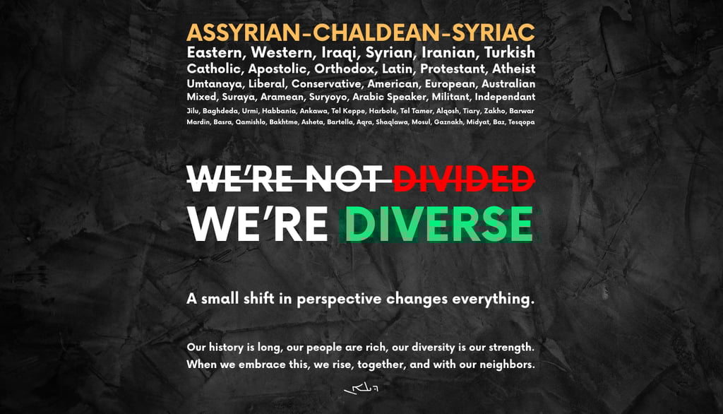 وإلى جانب هذا التنوع الأصلي، نشأت أشكال جديدة من التنوع عبر الزمن، ولا سيما منذ القرن الماضي. فقد أدّت الهجرة إلى ظهور فروع فرعية داخل جماعتنا المتنوعة أصلًا. وتكوّنت هويات خاصة في الشتات، مثل أبناء تللسقف في ديترويت، وأبناء أورمية في كاليفورنيا، وأبناء عنكاوا في إسكيلستونا. كل واحدة من هذه الجماعات تشكّلت بفعل هويتها الأصلية من جهة، وبفعل المسارات الفردية والجماعية في لحظة زمنية وسياق معين من جهة أخرى. وفي بعض الحالات، عززت هذه المسارات عناصر محددة من الهوية، مثل القومية الآشورية في الولايات المتحدة، أو الهوية الكلدانية في ميشيغان، أو مزيج من الثقافات الأوروبية أو الأسترالية في أماكن أخرى.